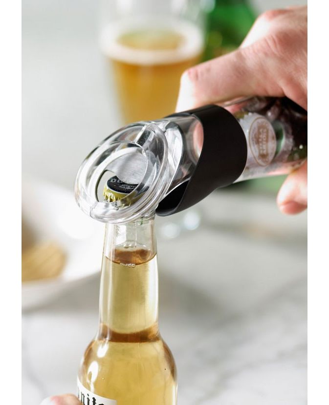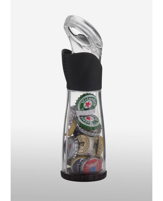 Больше нет разбросанных металлических крышек,  которыми  вы или ваш ребёнок можете пораниться. Открывалка для бутылок и контейнер для крышек в одном гаджете. Одним движением открываете любимый напиток, при этом крышечка сама попадает в контейнер. Интегрированная в высококачественный пластик металлическая открывалка, эргономичный дизайн, функциональность, мягкая легко снимаемая подставка.